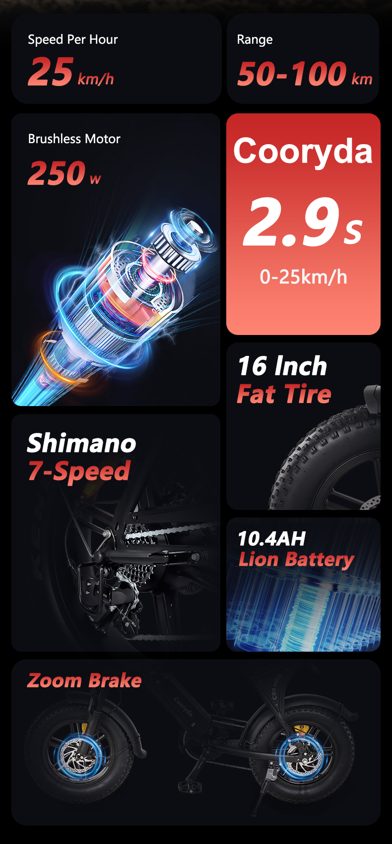 OUXI C80 Mini Electric Fatbike Velo Two Seat E Bike Electric Motor Fat Bike Electric Cycles E-bike 250W Ebike Citybike